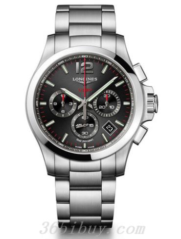 浪琴男表康卡斯系列精钢/黑色表盘L3.379.4.79.6